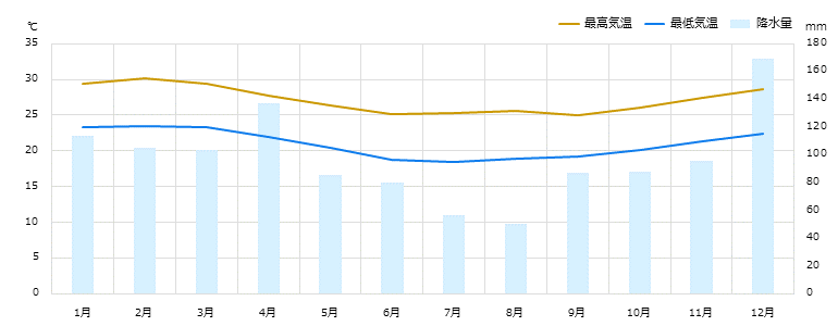 サバナ気候に属するリオデジャネイロは、夏は暑くて雨が多く、冬は空気が乾燥するのが特徴。特に、年末年始からカーニバルが行われる2月頃の夏季は日差しが強く湿度が高いため、不快に感じることも多いでしょう。体温の調節をしやすい服装で出かけることをおすすめします。1月 2月 3月 4月 5月 6月 7月 8月 9月 10月 11月 12月 旅行ベスト