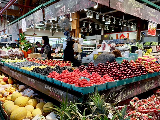 バンクーバー市民の台所「グランビルアイランド」へ行くツアー カナダの旬を感じられるパブリック・マーケット。所狭しと並ぶ食材の数々はお土産にも最適!