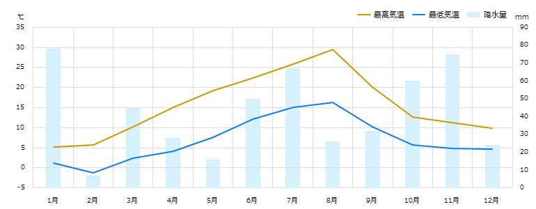 春~秋は日本と同様の服装よりやや暖かい格好をする。冬は冷え込むので十分な防寒対策をすること。1月 2月 3月 4月 5月 6月 7月 8月 9月 10月 11月 12月 旅行ベスト