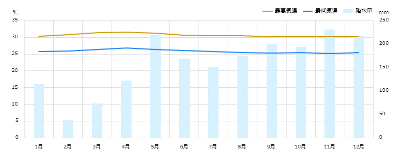 服装はカジュアルな夏服でOK。しかし、リゾートによっては、ディナー時に雰囲気を楽しむ欧米人客が集まる場所もあるので、服装コードがあるわけではありませんが、男性なら襟のついたポロシャツ、女性ならワンピース程度の服装を用意した方がよい。リゾート以外の場所へ観光に出掛ける場合は、イスラム教の国なので、肌の露出の少ない服装を心がけよう。1月 2月 3月 4月 5月 6月 7月 8月 9月 10月 11月 12月 旅行ベスト