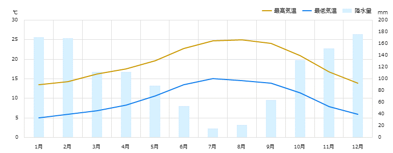 年間を通じて温暖な海洋性気候。