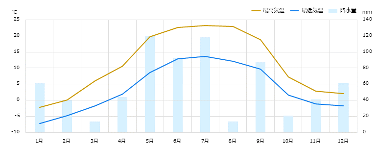 春、秋は日本の初冬ぐらいの服装をイメージすると良い。厚手のコートやダウンジャケットまでは必要ないが、寒暖の差が大きい季節であるため温度の変化に対応できる服装を用意したい。夏は日中は30度を超え汗ばむ日もあるが、朝晩に冷えたりするので、半袖のTシャツや、上から羽織るもの等を用意して温度の変化に対応できるようにしたい。冬は寒さが厳しく、最大限の防寒をしたい。靴も雪に滑りにくいようなブーツを用意すると良い。1月 2月 3月 4月 5月 6月 7月 8月 9月 10月 11月 12月 旅行ベスト