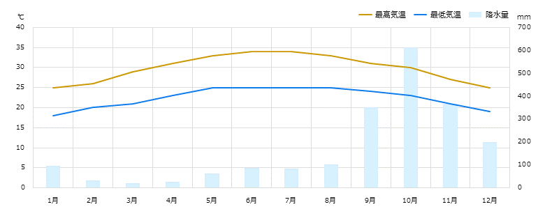 熱帯サバナ気候と熱帯モンスーン気候の中間に属しており、年間を通して高温多湿な日が続く。季節は2~8月の乾季と9~1月の雨季に二分される。冬に当たる雨季は雨が多いものの、20度程度までしか落ち込まないので寒さを感じることはない。乾季に入ると気温が35前後まで上昇し暑い日が続く。服装
