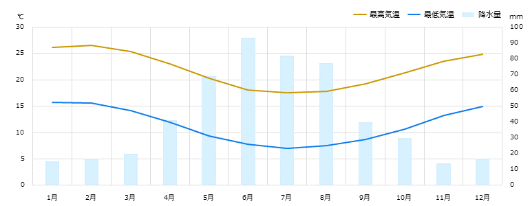 南半球なので、日本とは逆の季節になり、準備する服装には注意が必要。5月~9月ごろまで続く冬は朝晩冷え込むのでセーターなど、暖かくなる服装を用意しておきたい。10月~3月ごろまで続く夏は日中の日差しが強く気温も高くなり、半袖などで過ごしやすい季節ではあるが、朝晩の冷え込みや、風が強く肌寒く感じられることもあるので、上から羽織るものなどを用意して気温の変化に対応できるようにしておきたい。1月 2月 3月 4月 5月 6月 7月 8月 9月 10月 11月 12月 旅行ベスト