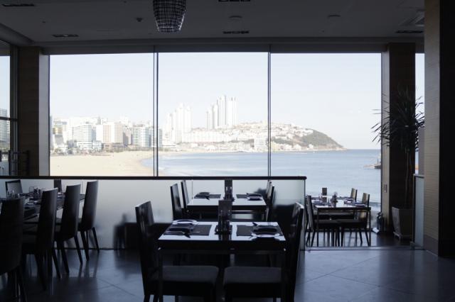 格式高い老舗の貫禄と、ビーチ(海雲台海水浴場)沿いに面する、なんともムーディーな佇まいは、