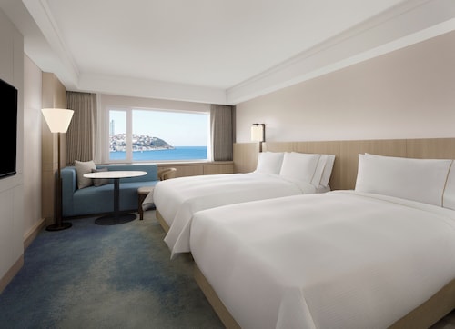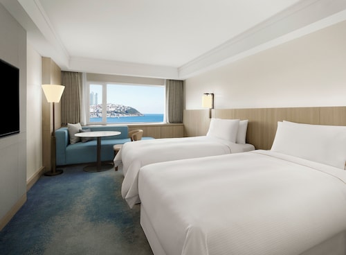 何度も世界のベストホテルにノミネートされるほどで、アメリカの歴代大統領も宿泊されたこともあるという、特一級のスターウッドグループホテル。元々の朝鮮ホテルが米国ウェスティンホテルグループとパートナー契約を結んだことで改名してから、のちに新世界グループが持分100パーセント所有することになったとのこと。(「世界一大きなデパート」としてギネスブックに載ったことでも有名。ちなみに新世界デパートは、釜山のセンタムシティにある。)格式高い老舗の貫禄と、ビーチ(海雲台海水浴場)沿いに面する、なんともムーディーな佇まいは、海雲台ビーチのシンボルとも言える程の独特な存在感を放っています。お部屋のタイプは大きく分けて3種類。デラックス(29㎡)、エグゼクティブ、スイート。冬柏島(トンベク島)が見える客室、または海沿い側(ヘウンデ海水浴場側)のお部屋から選択できます。インターネット利用可能。Wi-Fi無料。ミニバー、ヘアドライヤー、アラーム時計、新聞、ミニ冷蔵庫完備。ビュッフェ&ステーキハウス「カメリア」、アイリッシュパブ&スポーツバー「オーキムズ」、日本料理「黒松」、韓国料理「ショブル」、ラウンジコーヒーショップ「パノラマラ