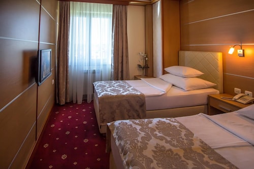 バニャルーカ中心部に位置するこのホテルは、パーク・ムラデン・ストヤノヴィッチおよびデルタプラネットショッピングモールから徒歩 15 分圏内です。スカイトラック・カーティング・アリーナおよびグランド トレード バニャ ルカも 2 km 圏内です。バニャ ルカ駅まで徒歩わずか 13 分です。 カジノのほか、この禁煙のホテルにはレストランおよびナイトクラブがあります。朝食ビュッフェ (無料)、共用エリアでの WiFi (無料)、およびセルフパーキング (無料)もご利用いただけます。その他に、敷地内にはバー / ラウンジ、スナックバー / デリ、およびコーヒーショップ / カフェがあります。 客室清掃は行われません。