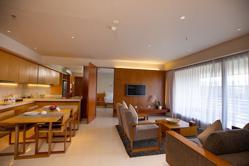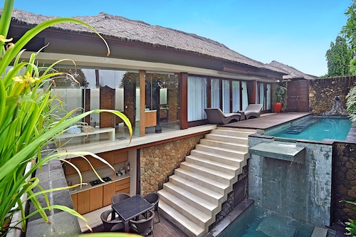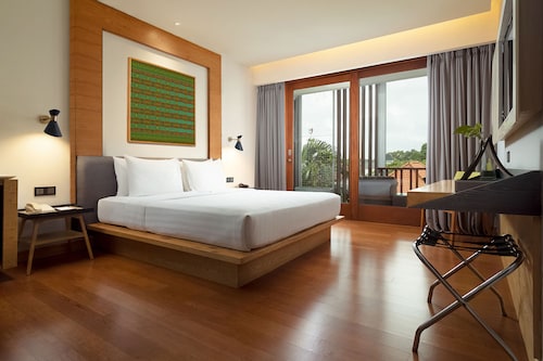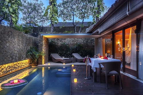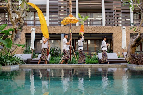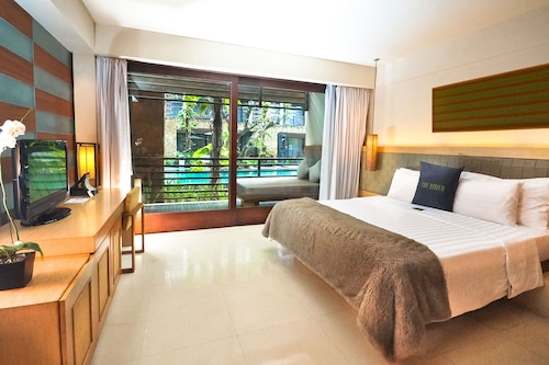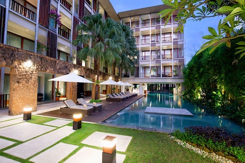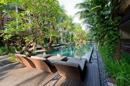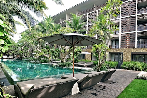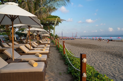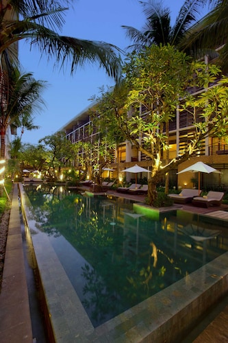 スミニャック地区のメイン通りに面し、ビンタン・スーパーにも歩いていける最高のロケーションにあるホテル。敷地は縦長でホテル棟からヴィラ、スイートまで多様なタイプが揃うホテルです。見た感じは高級アパートのような雰囲気ですが、コンパクトになっていて快適です。ダブルシックスの通りへも抜けることができ、海まで徒歩で15分。昼も夜もアクティブに動きたい女子、カップルの方には大変手頃なホテルです。ゴージャス感はないですが、プール、カジュアルなレストランに落ち着いた雰囲気のスパまであるのはうれしいです。空港から車で約30分、海まで車で約3分、徒歩で約15分、スミニャックのメイン通りに面している抜群に便利なロケーション。周辺の治安もよく、スミニャック散策に安心して出かけられます。ローカルスーパーマーケットのビンタン・スーパーまでもすぐなので、配り系土産はここで買えます。夜も賑やかなので安心して出歩けます。おススメはヘイブンルームとヘイブン・スイート。どちらもシンプルで清潔感があります。ヘイブンルームは、35㎡でバスルーム、ベッド、バルコニ―とコンパクトにまとまっていて大変過ごしやすいお部屋。wifiも完備、さらにDVDプレ