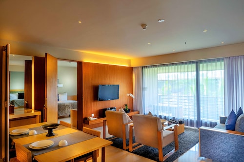 敷地は縦長でホテル棟からヴィラ、スイートまで多様なタイプが揃うホテルです。