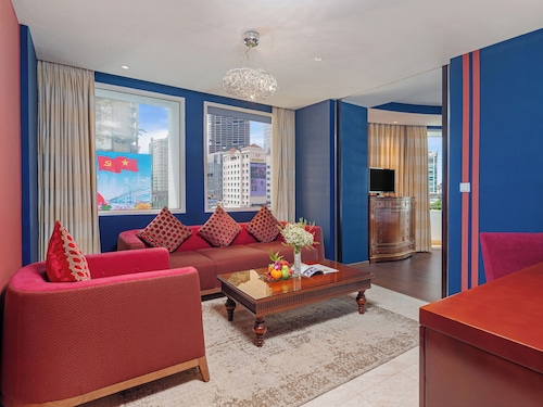 サイゴン川やおしゃれなドンコイ通り、タックスデパートなどガイドブックに載っている所まで比較的近いのでとても便利です。しかし、部屋に多少不満を感じました。ロケーションは、大通りに面していてドンコイ通りもすぐ近くにあって、ベンタイン市場までも徒歩で10分程で行けたのでとても便利でした。国営百貨店へも徒歩ですぐに到着出来ました。客室は掃除が行き届いていて清潔感があります。シワひとつ無いシーツに感動します。しかし、ベッドがちょっと固くかんじました。DELUXEに宿泊しました。部屋の中は小奇麗です。広さは十分ですが、大きい窓からの採光があり、ビテクスコタワーがキレイに見えました。バスルームはアメニティは一通り揃っています。狭すぎす広すぎず使いやすいです。お湯もしっかり出るので買い物で歩き疲れても安心です。しかし、使い方が下手だったのか、シャワーカーテンをしているにもかかわらず、バスタブの外に水があふれました。ホテルのサービスは日本語の客室案内もあり、片言ながら日本語を話すスタッフがいたので安心感があります。フロント、ベルボーイともに、いつも笑顔であいさつしてくれて感じがよかったです。ハウスキーピングの人達も朝から気