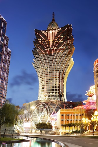 まるで巨大なオブジェのような、蓮の花の形の高層ビルの「グランド・リスボア」。