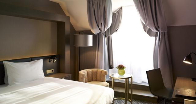 リング通りの北西側、ウィーン証券取引所に程近いエリアにあるヒルトン ウィーン プラザ。ウィーンで初めての”デザインホテル”として知られています。シュテファン寺院につながる繁華街、グラーベンの入口まで徒歩で10分です。ウィーンの高級ホテルはオペラ座界隈にまとまっていますが、リング通りの北西側からトラムで移動したらオペラ座まで10分程度で着きます。2014年初めに全面改装を終了。アールデコ調にまとめられた客室は現代的な雰囲気があり、インテリアも良いセンスです。もっとも一般的な「ヒルトンゲストルーム」は23平方メートル以上とゆったり、無線LAN(Wi-Fi)の利用も可能です。飲食施設としては、朝から深夜まで毎日オープンしている「ブラッサリー&バー エミル」があり、フランス料理や地元の味覚を生かした創作料理を提供しています。サウナとフィットネスセンターも完備しています。市内中心地へはホテルの目の前を走るトラムを利用するのが便利です。空港へは地下鉄でミッテ駅に行き、そこからSバーンなどを利用してください。