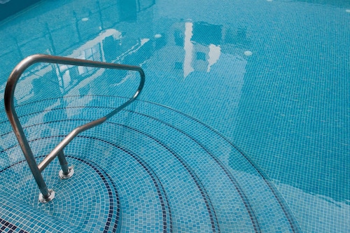 中庭には、フローリングがオシャレな屋外・室内プール(ジャグジー有り)もあります。