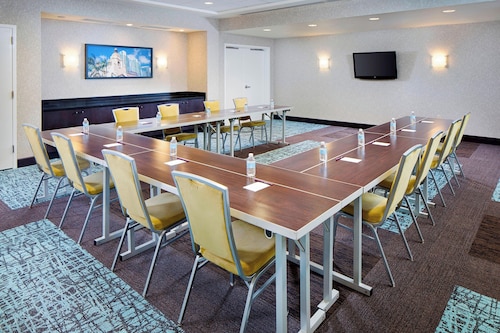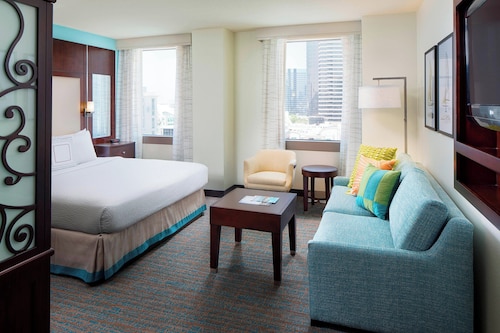 ガスランプクウォーターのど真ん中にあるキッチン付きホテルです。大きな冷蔵庫もあり、ラルフスという24時間営業のスーパーマーケットまで徒歩10分なので食材を買いに行くのも便利!またペトコパーク、コンベンションセンターまで徒歩約5分と好立地なホテルです!ロビーはレンガ調で暖かい雰囲気、何より2009年に建てられたばかりなので清潔感がありとても綺麗です。ホテル全館無料Wi-Fiで、朝食もついており、さらにペットフレンドリー(体重制限150kg)!フィットネスセンターとプールもついており、ホテル内の施設が充実しているのも嬉しいです。客室には、料理に必要な包丁やフライパン、お鍋やキッチンペーパーなどキッチン用品は全て揃っています。さらに、食器洗い機もついているので片付ける時間を省いてリラックスできます!ソファとTVもあるのでご自宅にいるかのように寛げます。バスルームアメニティーはポールミッチェルの物で、美容師によって作られたアメリカ発祥の人気ブランドです。ホテル内にはバーベキューとピクニックスペースがあり、またアメリカン料理レストランの営業時間は夕方5時から夜11時までです。ちょっとした物が必要な時はミニマートがホ
