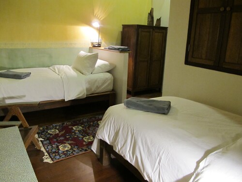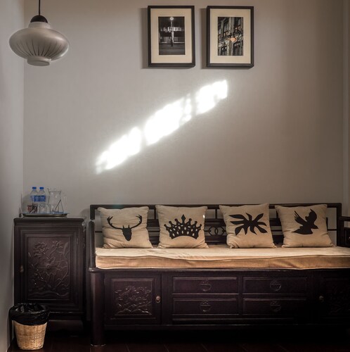 インド人街という場所柄、昼間は大音量のインド音楽が流れ歩いている人もインド系のローカルばかり。だが一歩建物内に足を踏み入れると外の喧騒を忘れる、落ち着いた空気が漂う。室内へは靴を脱いで上がるというちょっと独特なスタイルで、古めかしい木造の階段などは昭和のようなノスタルジックなぬくもりを感じさせる。天井が高く、ベッド、クローゼット、ライティングデスクとシンプルながらどれもアンティークっぽく、建物の雰囲気にマッチしている。