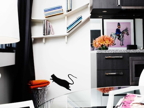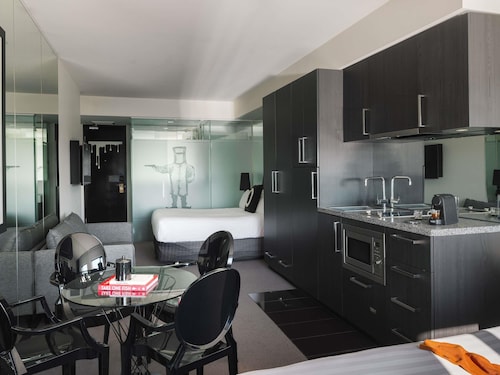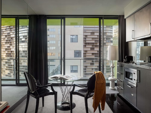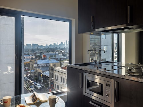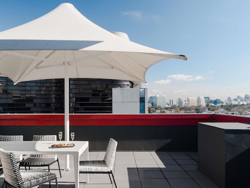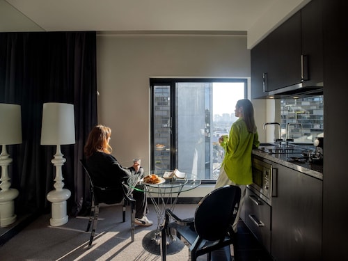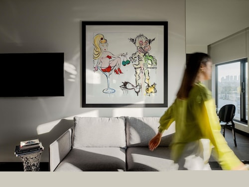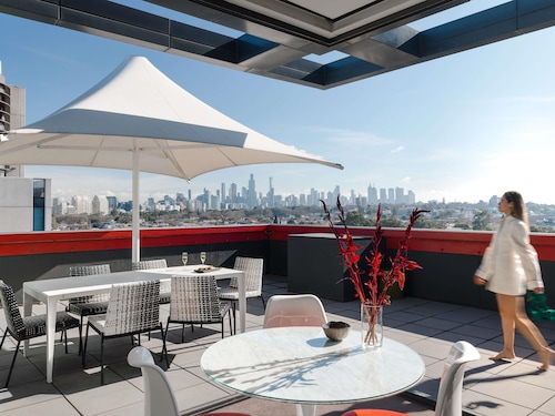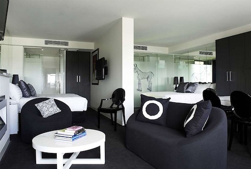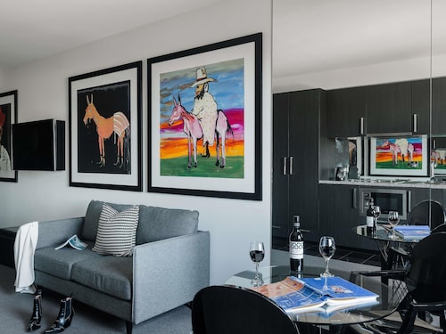 ホテルのインテリア・デザインを、メルボルンを代表する現代アーティストが担当する「アート・シリーズ・ホテル・グル―プ」が、最初にオープンさせたフラッグシップ・ホテルです。ザ・カレンは、牛や馬のモチーフで知られる気鋭のアーティスト、アダム・カレン氏が手掛け、彼のイラストやオブジェが、ホテルのいたるところにちりばめられています。館内はまさにアート・ギャラリーのよう!さらに、若者に人気の町プラーランのマーケットの目の前という好ロケーションも魅力。メルボルン中心部からはトラムを使えば約15分の距離距離です。全客室ミニ・キッチン付きで、4ツ星クラスの快適さ。そしてなにより、モダンでシンプルな家具に、ポップなアートがマッチした、カラフルで楽しい雰囲気がこのホテル最大の魅力です。中でも最上階のペントハウスは、本格的なアパートメント・タイプで長期滞在にもぴったり。このペントハウスのデッキから眺める、メルボルンのパノラマは最高です!また、ホテルに隣接して、地元っ子に人気のニューヨーク風ビストロと飲茶が有名な中華レストランがあり、ショップやレストラン、カフェが立ち並ぶチャペル・ストリートへも徒歩すぐの距離なので、ショッピングや