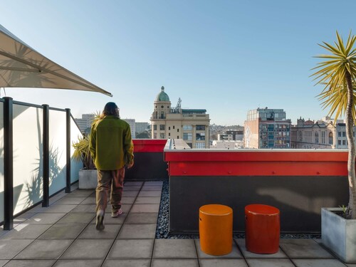 全客室ミニ・キッチン付きで、4ツ星クラスの快適さ。そしてなにより、モダンでシンプルな家具に、ポップなアートがマッチした、カラフルで楽しい雰囲気がこのホテル最大の魅力です。中でも最上階のペントハウスは、本格的なアパートメント・タイプで長期滞在にもぴったり。このペントハウスのデッキから眺める、メルボルンのパノラマは最高です!
