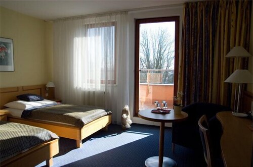 オロモウツ中心部に位置するこのホテルは、ベズルチ公園およびドルニー広場から徒歩 5 分圏内です。マリアン プレイグ コラムおよびオロモウツ民間防衛シェルターも徒歩 10 分歩圏内です。オロモウツ本駅まで徒歩わずか 24 分です。 このホテルには、レストラン、フィットネスセンター、およびバー / ラウンジがあります。朝食ビュッフェ (無料)および共用エリアでの WiFi (無料)もご利用いただけます。その他の設備には、スナックバー / デリ、サウナ、およびセルフパーキング (有料)があります。