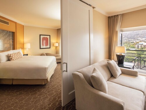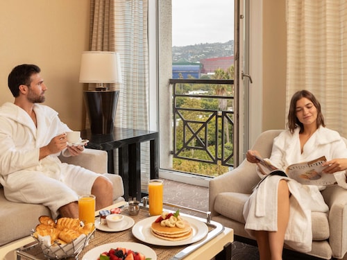”高級ブランドに飽きて、何か新しい今風の手ごろなものを探し求めたーい”という人に必見のホテルです。目の前が超大型モールのビバリーセンター。ニューヨークに本店構える2大デパートのメーシーズとブルーミングデールスを筆頭に、アメリカンカジュアルブランドが充実していて180店舗ほどのショップ、レストラン、カフェ、なんと13スクリーンもある映画館まで入ちゃってます。朝から夕方までみっちり観光して、そのあとシャワーでも浴びてお買い物と夕食をという忙しいスケジュールでもアクセスレスで難無くこなせてしまいそうです。特に、”3泊5日の超過密スケジュールで観光、買い物、おいしい食事!すべてこなしたい!!”なんていう欲張りな方にはもってこいのステイ場所です。ホテルはヨーロピアンムードを醸し出したラグジュアリーホテル。客室は広くて、バスルームも申し分なく使いやすい作り。 アメニティも女性向けに小まめに揃っています。部屋タイプはスーペリアキング、ラグジュアリールームからスイートルームまで幅広く、パティオのある部屋まで用意されてます。ベッドは程よくソフトな寝心地で、リネンもとっても清潔でタオルも必要以上に備えてくれています。Wi-F