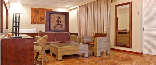 フィリピンらしいフレンドリーなホスピタリティーで迎えてくれるホテルです。日本人の利用客も非常に多く人気なホテルといえます。併設されているダイビングショップも長い歴史を持っているので是非訪れてみてください。国道に面しているため他のホテルに比べれば立地としての条件は良い様に感じますが、マクタン島内のホテルなのでセブ市内へは時間が掛かる点があります。シャトルバスがないのでタクシーで移動になります。最近近くにスーパーができたので、以前よりは便利になりました。客室は、竹や伝統的な家具などを使う事により、南国のリゾート地という印象を受けます。茶色を基調にしている部屋が多く、落ち着いた空間作りがされていて好感の持てる客室です。バスルームもリゾートホテルらしく清潔に保たれています。清掃なども行き届いているので、不快に感じる事は無いと思います。また、シャンプーやボディーソープなどのアメニティーも揃っています。他のリゾートホテルに比べればこじんまりと落ち着いており、リラックスできます。ダイビングショップやプールなども併設されているのでマリンスポーツに関しては十分満足できるでしょう。ホテルスタッフの対応も良く、陽気でフレンドリ