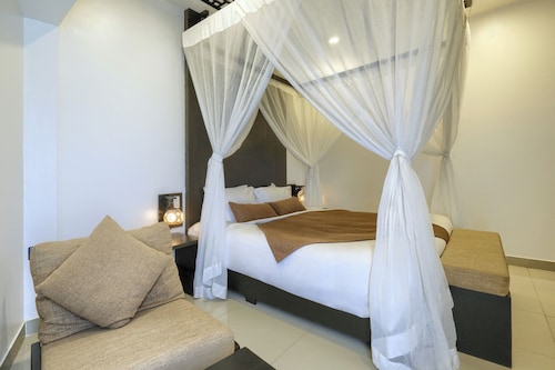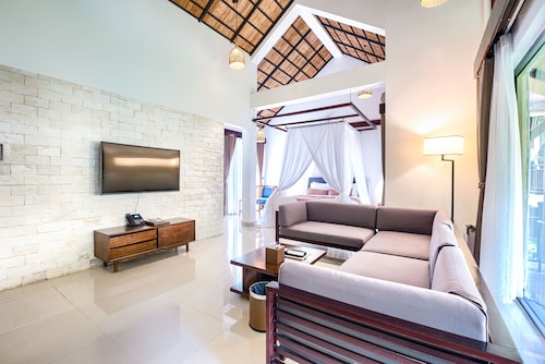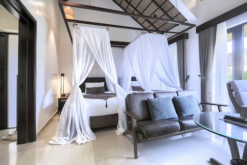 ヴィラのお部屋は天蓋があり、落ち着いた感じのデザイン。
