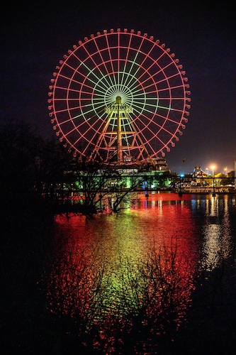 露天風呂では部屋着も貸し出しされるので、お風呂上がりは観覧車の見える休憩所でビールや食事を楽しみながらゆったりと寛ぐことができます。