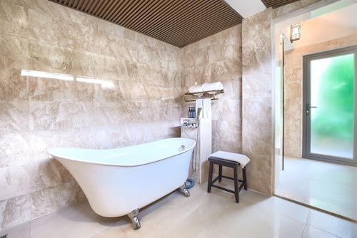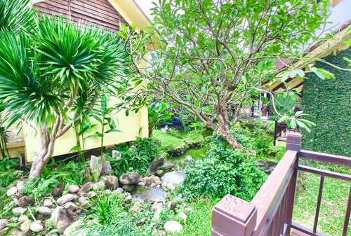 手入れされた庭と露天風呂が特徴の閑静なリゾート