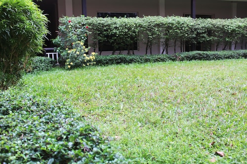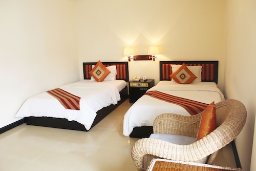 シェムリアップ空港から車で約15分、シェムリアップ川沿いの橋の近くに位置しています。