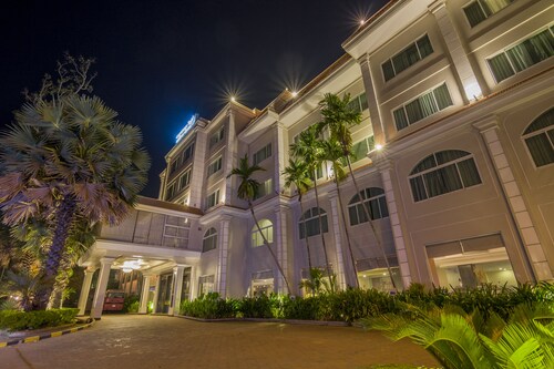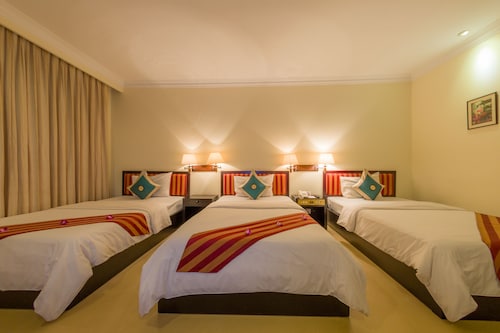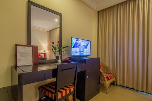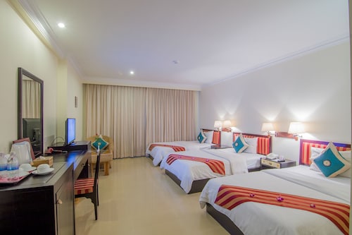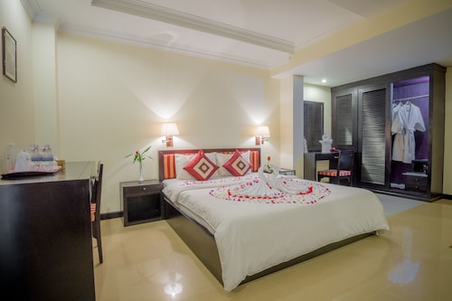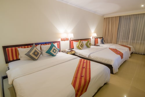 最大の魅力は、中心街のオールドマーケットから徒歩圏内ということ。他のスタンダードホテルと比べ設備も充実しており、何よりホテル自体が新しく清潔感があります。しかし、最近はアジア系の団体客が目立ち、ロビーやレストランが騒がしいのが残念なポイントです。シェムリアップ空港から車で約15分、シェムリアップ川沿いの橋の近くに位置しています。徒歩圏内には、オールドマーケットやトレードセンター、日本人経営のレストラン「モロッポー」があり、食事所に困ることはありません。夜間も街灯があるため比較的明るく安全ですが、一人歩きは危険なので避けた方が良いです。客室は、スタンダード、スーペリア、デラックス、ファミリールーム、リビエラスイート、全175室5つのカテゴリーに分かれています。スタンダードルームの広さは18~20平方メートルと狭めですが、欲を求めなければ、宿泊する分には十分。室内は、白を基調とし、モダンな家具でまとめられて清潔感があり、窓からはシェムリアップ川を眺められます。無料Wifiインターネット利用可、電話、セーフティーボックス有り。バスルームも最低限のアメニティーズ、バスタブ、シャワーブースは充分整っているので不満は