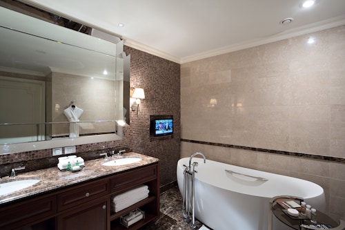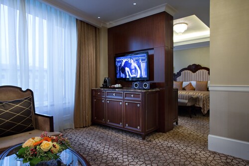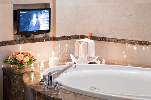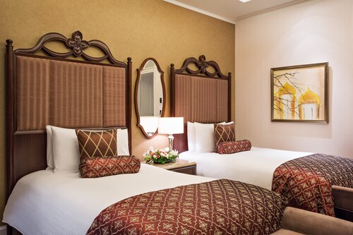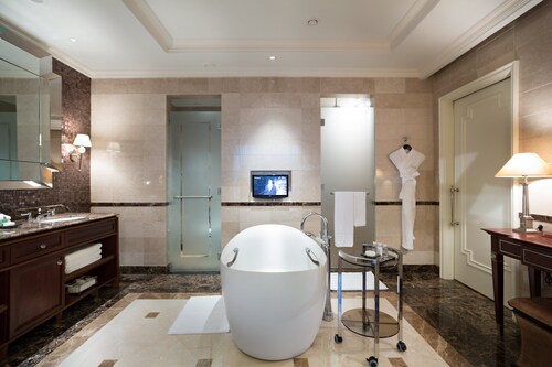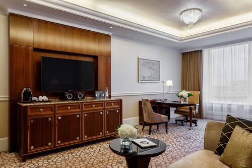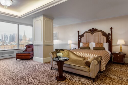 2010年にロシア初のロッテブランドとしてオープンしたロッテホテルモスクワ。10年が経過した現在も上質なサービスで高く評価されており、世界中のビジネスマンや観光客に利用されています。多くのお土産ショップや飲食店が建ち並ぶ歩行者天国、アルバート通りから徒歩約5分、最寄りの地下鉄スモレンスカヤ駅からも徒歩約5分とアクセス良好で、赤の広場やクレムリンも車や公共交通機関で10~20分と観光にも便利な立地です。全300室からなる客室は、最もスタンダードなスーペリアルームでも42~48平方メートルと広々としています。しかしこのホテルのポイントはそれだけではありません。ベッド脇のスマートパッド(ルームサービスやフロントへの連絡、消灯などが行える画面)には英語・ドイツ語などに並び日本語もあります。ホテルスタッフは主に英語・ロシア語対応のみですが、日本語対応の案内があるだけでも安心感が違います。備品にはスリッパ、バスローブ完備、またコーヒーメーカーも全室に設置され大変便利です。バスルームには、TOTOのウォシュレットが完備され、バスタブとシャワーブースは独立しており、モルトンブラウンのシャンプー・リンス・バスジェル、体重計