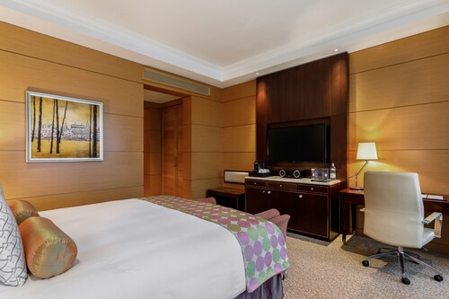 全300室からなる客室は、最もスタンダードなスーペリアルームでも42~48平方メートルと広々としています。しかしこのホテルのポイントはそれだけではありません。ベッド脇のスマートパッド(ルームサービスやフロントへの連絡、消灯などが行える画面)には英語・ドイツ語などに並び日本語もあります。ホテルスタッフは主に英語・ロシア語対応のみですが、日本語対応の案内があるだけでも安心感が違います。