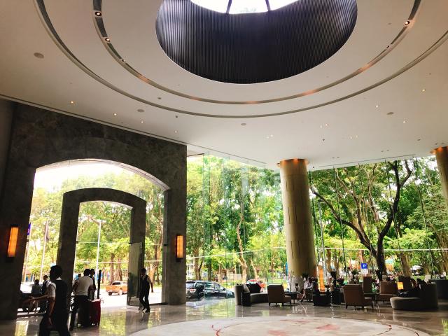 ベンタン市場の南側から西へ歩いて約5分、9月23日公園もすぐ近くという位置にあるホテル。館内の内装などが新しくされてリニューアル・オープンし、クラブラウンジの利用などさまざまなサービスが受けられる「レジデンスクラブルーム」での宿泊も評判が高いようです。またレジデンスクラブルームクラス以上の宿泊者のみが利用できる「レジデンスクラブ・リビングルーム」も内装が一新されており、クラブルームとしては珍しく、広々としたテラスエリア(屋外席)があるのも魅力。喫煙される方も気兼ねなく使えるようです。改装後の大きな違いといえば、エントランスの天井が高くなったように感じるほどの広い空間が生まれたこと。窓いっぱいに向かいの公園の緑が広がる環境は美しく、飾り立てない豪華な演出からも、こちらのホテルならではのゆとりを感じます。定評のあったサービスに関しても好感度が高まったように感じられ、宿泊客だけでなく、ちょっと立ち寄った程度の利用客にも大変丁寧で、心地よい笑顔を惜しみなく向けてくれるのが印象的でした。そして何よりも、Dong Khoi通りなどといった観光で訪れたい中心街にも、ローカルなエリアにも、またバックパッカーエリアにもほど