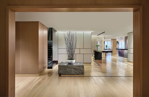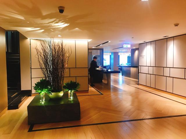 改装後の大きな違いといえば、エントランスの天井が高くなったように感じるほどの広い空間が生まれたこと。窓いっぱいに向かいの公園の緑が広がる環境は美しく、飾り立てない豪華な演出からも、こちらのホテルならではのゆとりを感じます。
