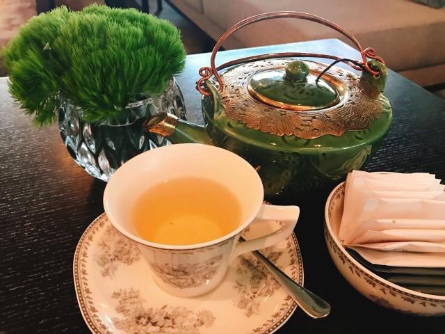 ホテル入口の右手にある「Whisper Bar and Lounge」は、いつも落ち着いた雰囲気を味わえるラウンジです。人との待ち合わせや仕事の打ち合わせに最適で、そこで提供されるベトナム・ティー(120,000ドン)のティーポットもとっても素敵!