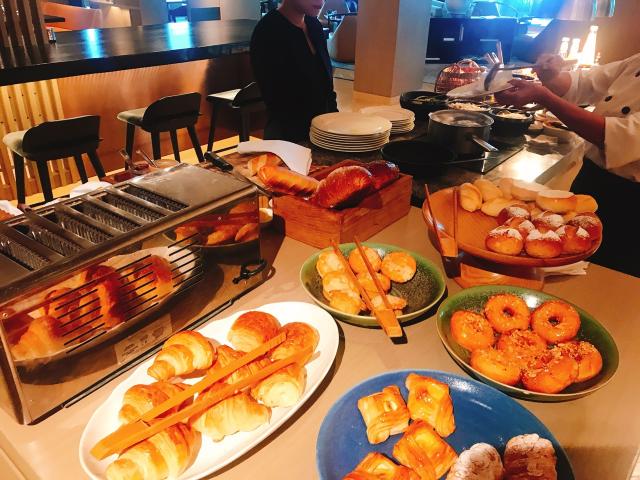 朝食会場にあるお料理には、質の良いパンやチーズ、ハム類も揃っていて、バリエーションはとても豊か。朝6時から10時までの幅広いセッティングで、ゆっくりできるのも魅力的。これなら連泊して毎朝ここで朝食を食べても、飽きることはなさそうです。