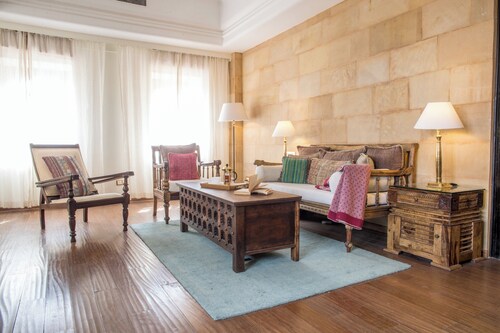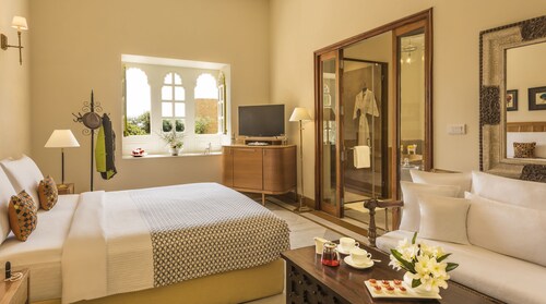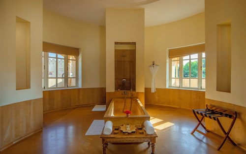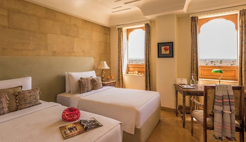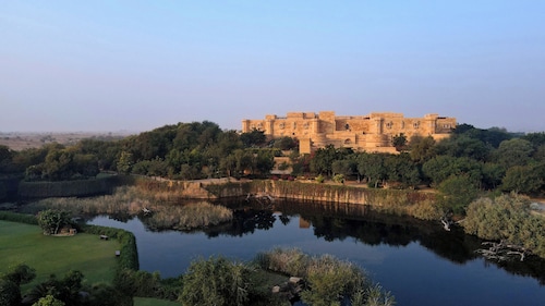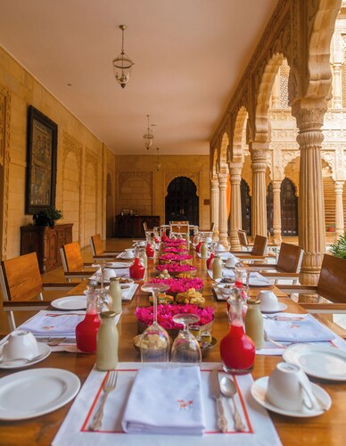 ジャイサルメールにあるこの高級ホテルは、クルダラ廃墟の村の井戸、ナトマルジ キ ハヴェリ、ヴィヤス・チャトリから 15 km 圏内です。バーティアー マーケットおよびパトウォン キ ハヴェーリー (建造物)も 15 km 圏内です。 フルサービス スパ、屋内プール、およびレストランがある禁煙のホテルです。朝食ビュッフェ (無料)、共用エリアでの WiFi (無料)、およびバレーパーキング (無料)もご利用いただけます。その他に、敷地内にはフィットネスセンター、バー / ラウンジ、およびサウナがあります。