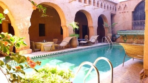 リアドの入口から入って廊下を抜けると、奥にはプールが!暑い夏の昼間にアイトベンハドゥを観光した後は、プールでリフレッシュもいいのではないでしょうか。ハマムもあり、事前に予約しておけば、マッサージや垢すりも受けられます。