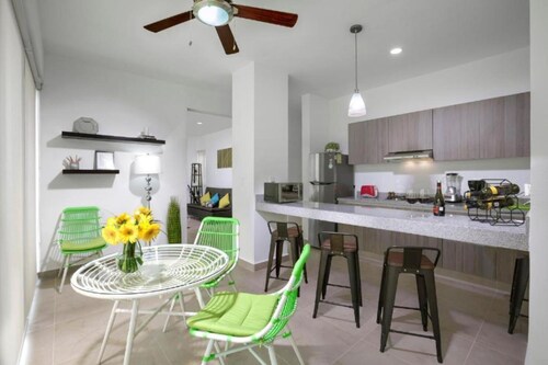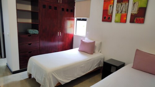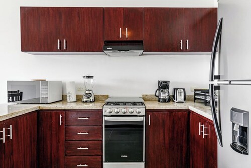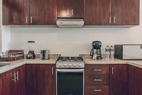 プエルト モレロスに位置する、ビーチフロントのこのアパートスタイルホテルは市内中心部にあり、プエルトモレロス国立公園の珊瑚礁およびプエルト モレロス タウン スクエアから徒歩 10 分圏内です。オホ デ アグア ビーチおよびファロ・インクリナドも 10 分圏内です。 ビーチにあるこのアパートスタイルホテルでは、子供用プールやピクニックエリアなどの便利な設備やサービスをご利用いただけます。 各客室では、冷蔵庫とオーブン、コンロ、電子レンジが備わったキッチンをご利用いただけます。エンターテインメント設備として、ケーブル放送付きの薄型テレビがあるほか、便利なダイニング スペース、応接スペースもご利用いただけます。客室清掃はリクエストにより行われます。