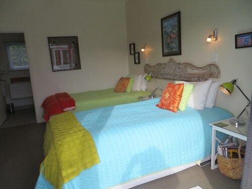 川沿いに位置するこの高級B&Bは、Hauraki Rail Trail Thames、ゴールドフィールズ ショッピング センター、テムズ病院から 5 km 圏内です。The TreasuryおよびGoldmine Experienceも 5 km 圏内です。 スパ用浴槽のほか、この禁煙のB&Bにはランドリー設備および庭園があります。フル ブレックファスト (無料)、共用エリアでの WiFi (無料)、およびセルフパーキング (無料)もご利用いただけます。その他の設備には、バーベキューグリルおよびセーフティボックス (フロントデスク)があります。