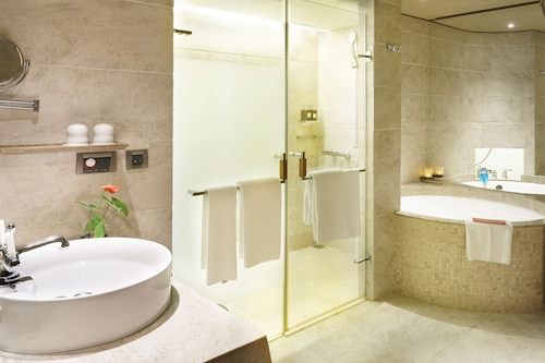DLXルームは丸いバスタブ+独立型シャワールームがありますので、