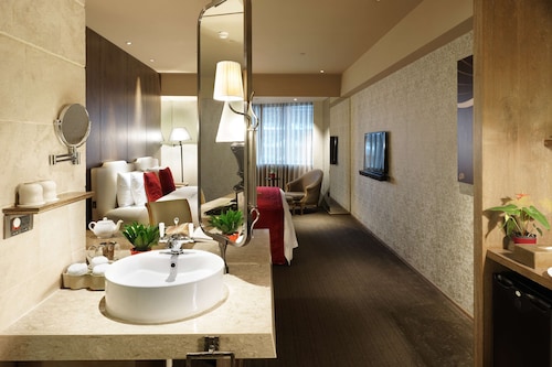 このホテルは何と言っても立地が抜群です!台北駅から徒歩約3分!市民大道という大きな通りを渡るともうホテルに着きます。台北駅はMRT、台湾鉄道(国鉄)、台湾新幹線が交差している台北市内一大きな駅で、日本で言えば東京駅のような感じです。新幹線等で南部へ日帰り旅行へ行くにも便利ですね。隣接しているショッピングモールには色々なショップも入っており、お土産を買ったり、食事をするにも大変便利でした。1階ホテル入り口を入ると、このホテルのシンボル「馬」がお出迎えしてくれます。馬と記念撮影の後は、エレベーターで6階へ上がってカウンターへ。エレベーターを一歩でると、ホテル独自の世界観に圧倒されました。日本のホテルではなかなか味わうことのできない雰囲気を味わってみたい方にはオススメのホテルです。バスルームの作りが年配の方には少し抵抗があると思います。客室は他のホテルにはない、レトロなヨーロッパを感じさせる内装になっています。雰囲気がとてもよく、素敵なホテルライフを過ごすことができそうです。ただ、どちらかというと欧米系の方向けに作られているので、バスタブが丸かったり、部屋に入ってすぐにシャワーやバスタブが見えるのは、年配の方に