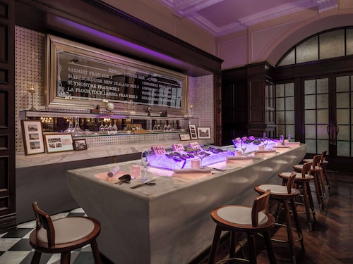 上海一長いバーカウンターでシャンパンカクテルやオイスターを味わってみては?