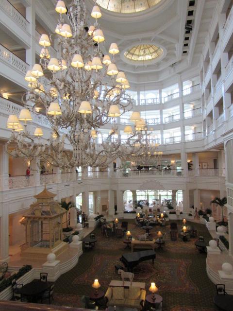 グランド・フロリディアンはディズニー直営ホテルの中でも最高級のデラックスリゾートで、ビクトリア調の内装にはシャンデリアや大理石があしらわれ、様々な調度品が飾られたロビーではとても優雅でゆったりとした時間が流れています。グランドピアノがあり、時間帯によっては生演奏も聞くことができます。