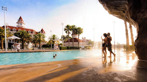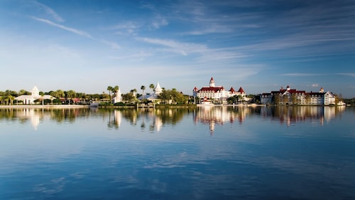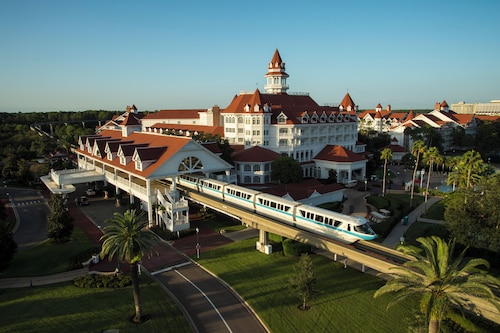 グランド・フロリディアンはディズニー直営ホテルの中でも最高級のデラックスリゾートで、ビクトリア調の内装にはシャンデリアや大理石があしらわれ、様々な調度品が飾られたロビーではとても優雅でゆったりとした時間が流れています。グランドピアノがあり、時間帯によっては生演奏も聞くことができます。 1F、2Fにはギフトショップやレストランがあります。また、2Fから直接モノレール乗り場につながっており、マジックキングダムへはモノレール、ボートでの移動が可能というロケーションの良さもポイントです。他のパークへは無料のシャトルバスサービスがあるので安心です。スタンダードルームは落ち着いた雰囲気でインテリアなどは高級感があり、クイーンベッド2台とプルダウンベッド(ソファの背を引っ張るとシングルベッドになる)が1台あり、最大5名まで宿泊が可能です。さすがディズニー直営ホテル、お部屋の至る所に隠れミッキーがいますが、シックにまとまっているところもステキです。アメニティはディズニーオリジナルのシャンプー、コンディショナー、バスジェル、ボディローション、ヘアドライヤー、コーヒーメーカー、アイロン、アイロン台、冷蔵庫、セーフティボック