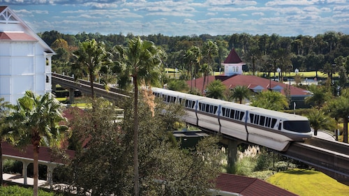 1F、2Fにはギフトショップやレストランがあります。また、2Fから直接モノレール乗り場につながっており、マジックキングダムへはモノレール、ボートでの移動が可能というロケーションの良さもポイントです。他のパークへは無料のシャトルバスサービスがあるので安心です。