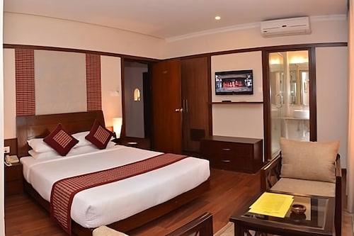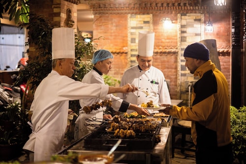 タメルに位置するこのスパ付きホテルは、エレメンツの寺院、三女神の寺院、バリーズ・カジノから徒歩 10 分圏内です。夢の庭園およびダルバール マルグも 15 分圏内です。 レストランのほか、このホテルにはバー / ラウンジおよびスナックバー / デリがあります。共用エリアでの WiFi (無料)および バレーパーキング (無料)もご利用いただけます。その他に、敷地内には24 時間対応ビジネスセンター、カンファレンス センター、およびコーヒーショップ / カフェがあります。