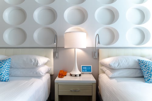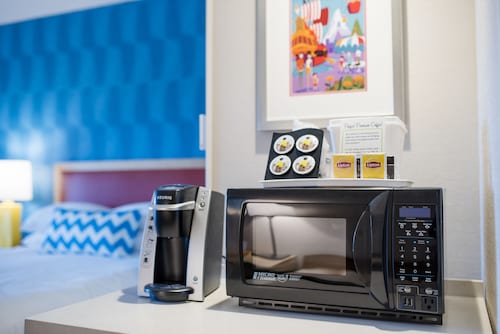 【Wi-Fi全館無料】 【全室禁煙】 この魅力的なホテルは、ディズニーランドまで徒歩約8分のアナハイムの中心部に位置しています。ホテルのすぐ近くには、さまざまなショップや数多くのレストラン、カフェ、バー、大規模なエンターテインメント施設が集まっています。館内にはゲームルームが置かれており、ルームサービスとランドリーサービスが提供されています。車を利用する場合には、ホテルの駐車場を使用することができます。モダンで快適な客室には、ヘアドライヤー付きの専用バスルーム、テレビ、プレイステーション、小型冷蔵庫、ダブルベッド、ティー/コーヒーメーカーが備えられています。屋外には、滝やホットタブ、子ども用プールもある 2 つの温水プールがあります。 旧 Howard Johnson Anaheim 【宿泊年齢制限について】 代表者の方が18歳以上より宿泊可能です。詳細は「ホテルからのお知らせ」をご確認下さい。