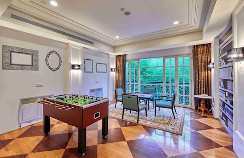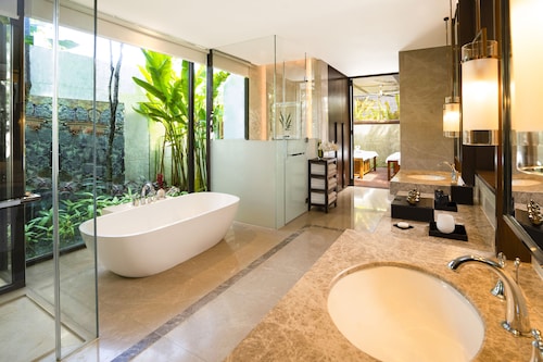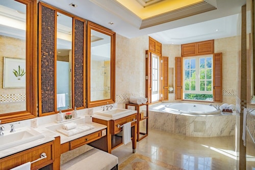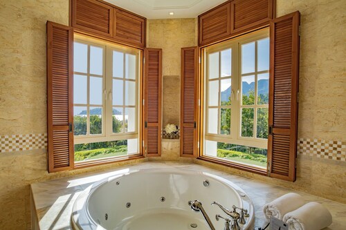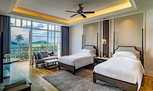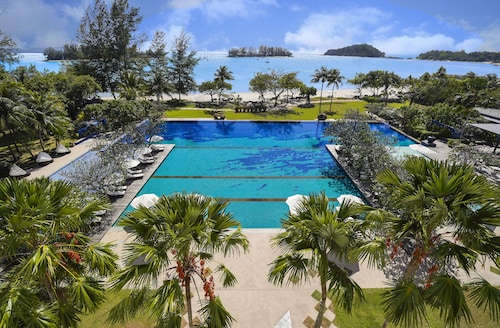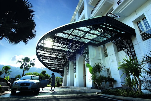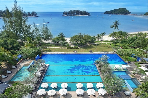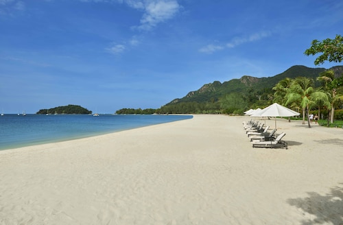 贅沢な大型ヨットが停泊するテラガハーバーのマリーナに面する、ランカウイでは珍しいコロニアル調の建物。 ベルマンに迎えられ、ロビーの扉を入ると、高い天井にクラシカルなシーリングファンが回り、 ひんやりとエアコンが効いていてほっとする。 チェックインの時には、スパのスタッフがやってきてロビーで疲れを癒す肩もみのサービスがあり、 いきなりVIPになったような贅沢感が味わえる。 グランドフロアにあるレストランやカフェなども、古きよきヨーロッパ植民地風に統一され、 客室も「クラシカルなヨーロッパ風」にこだわった少々大仰な家具使いが特徴。 客室によっては天蓋付のお姫様ベッドの場合もある。 回廊のようになった館内は、どのエリアも広々とした中庭に面していて、 明るく日が差し込み、夜は幻想的にライトアップされる。 高い天井のピアノラウンジや、ランカウイで最も充実した本格的シガーバーがあり、 夜になると洗練された大人の社交場といった雰囲気を醸し出している。 ランカウイ最大級のプールは、ビーチチェアでくつろいだ時に、 水平線がちょうど足元にくる抜群のバランスで設計されていて、 のんびりカクテルを飲みながらくつろいでいると、夕方には足先に夕日が沈んでくるような気がする。 ホテル内のレストランもよいが、同じテラガハーバーのプロムナードには各種のレストランが並んでいるので、 ホテルを出て、ヨットハーバーの風にあたりながら今晩の夕食を決めるのも楽しい。