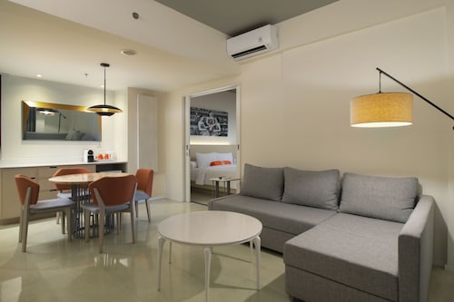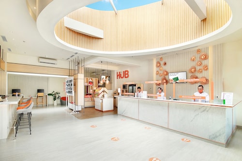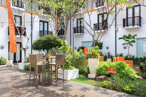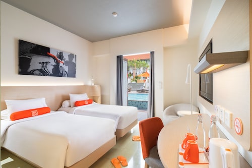 空港近くにあるオレンジの看板がポップなイメージの3スターホテル。近年、このクラスの3スターホテルが数多くできていますが、このハリス・トゥバンはその先駆け的な存在です。空港とカルティカプラザ通りの中間ぐらいにあり、ホテルのすぐ前には地元のスーパーもあり、便利。クタスクエア等にも近いですが、徒歩ではちょっと厳しいかも。あとは渋滞がたまにキズ。でもエアポートリーフにも近く、お手頃で、サーファーに嬉しい立地かも。また、空港にも近いので、深夜の帰国便等の場合は出発前に利用するのもいいかも。お部屋は看板同様、オレンジを基調にしたポップでミニマリストなデザイン。広くはありませんが、アロマポットなんかも置いてあったりして、なかなかおしゃれです。ソファー等はありませんが、ワーキングデスクもあり、WIFIインターネットも無料で使えるので便利。1階のお部屋はテラスからプールに行けちゃったりします。スタンダードルームは固定式のシャワーのみですが、シャンプーもあって、とっても清潔感があるので快適。水圧も強くて使い勝手はよいです。スイートにすれば、大きなバスタブもありますよ。スタッフもオレンジのTシャツにバンダナといったカジュアルな