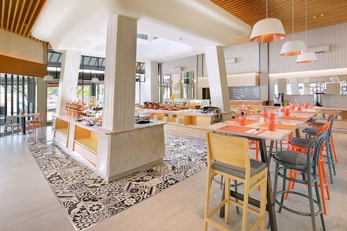 空港近くにあるオレンジの看板がポップなイメージの3スターホテル。近年、このクラスの3スターホテルが
